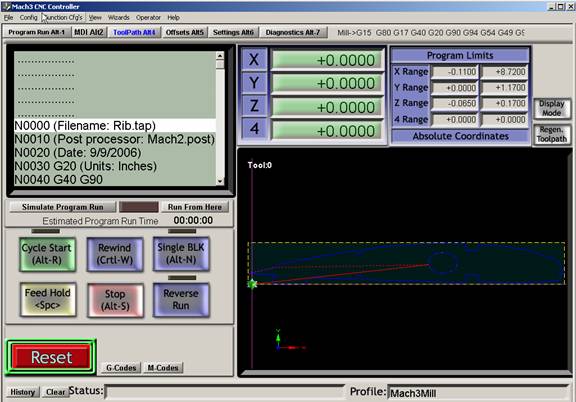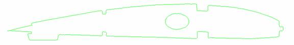 Figure 6. And finally below is the wing Rib in the CAM software, Mach3 ready to tell your CNC machine how to cut the part.