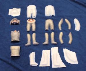 and cut in half to give a top and bottom half. The legs were cut from the waist